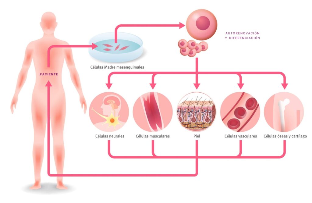 Son la materia prima a partir de las cuales se generan todas las demás células del cuerpo con funciones especializadas. La mayoría de los tejidos de los adultos posee un número de células madre adultas que permiten su renovación periódica o su regeneración cuando se produce algún daño tisular. Nuestros tratamientos se basan en células madre multipotenciales del adulto que son capaces de diferenciarse a distintos tipos de células de un linaje particular: hueso, cartílago, piel, sistema nervioso, vasos sanguíneos, músculo esquelético y músculo cardiaco.