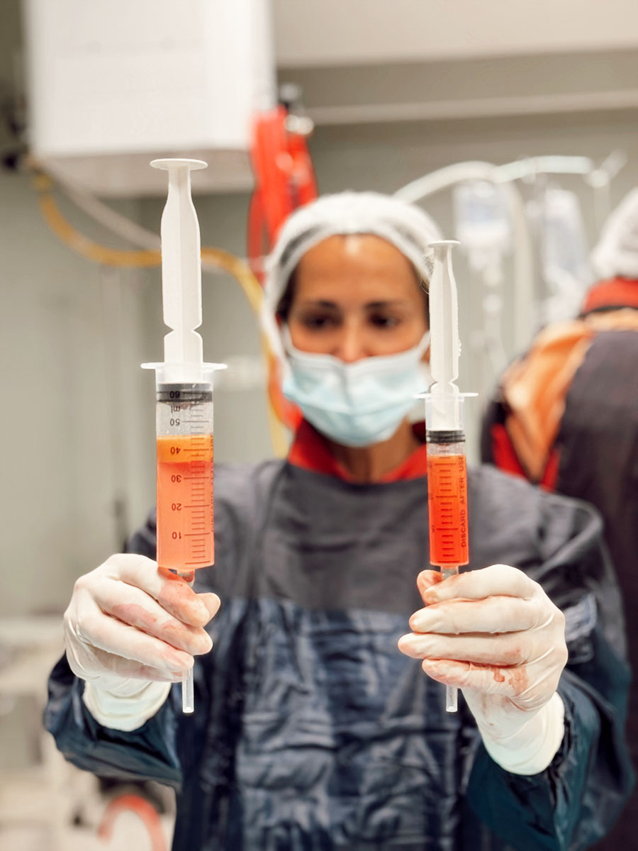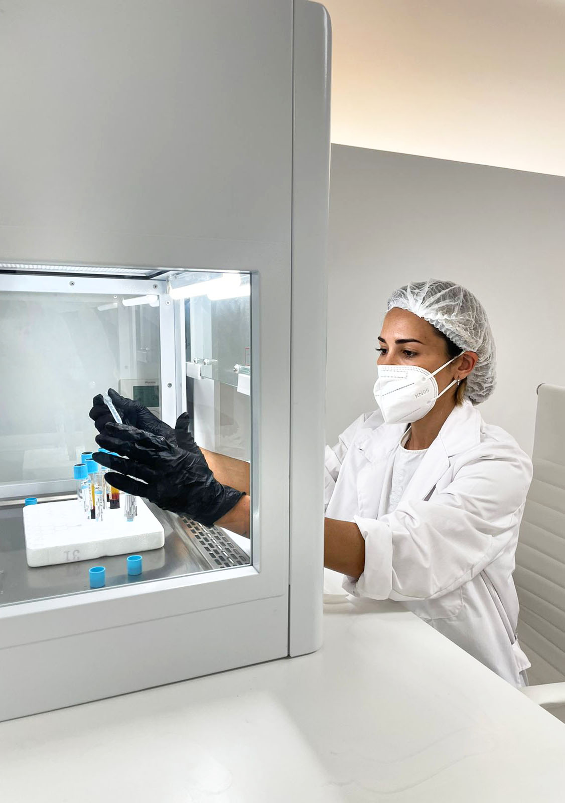 El procedimiento se realiza en consultorio, en donde se extraen entre 60-80 ml de sangre del propio paciente. Se realiza procesamiento específico acorde al tratamiento con centrífugas de tecnología avanzada. Posteriormente, se extrae una porción rica en plaquetas y se vuelve a procesar en la centrífuga a distintas revoluciones por minuto. Lo obtenido luego de este segundo procesado es un plasma puro en plaquetas que lo diferencia notablemente en cuanto a su calidad y concentración de otros plasmas obtenidos en otros centros. De aquí, se obtiene el conocido “pellet” utilizando cabinas de flujo laminar para su manipulación. Finalmente, bajo medidas de asepsia y antisepsia, éste se aplica en el tejido a regenerar.